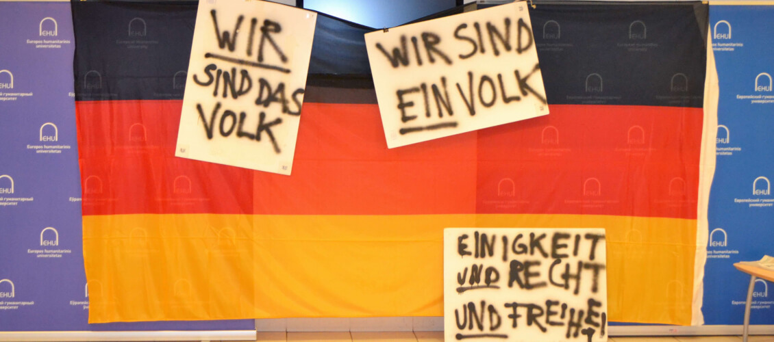 During the opening of the exhibition, which is composed of 20 posters, representing the history of 1961-1989 Berlin Wall and its Fall, EHU Governing Board member Prof. Ludger Kühnhardt (University of Bonn) and Jakob Wöllenstein (Konrad Adenauer Foundation Belarus Country Office) will share remarks about the anniversary.