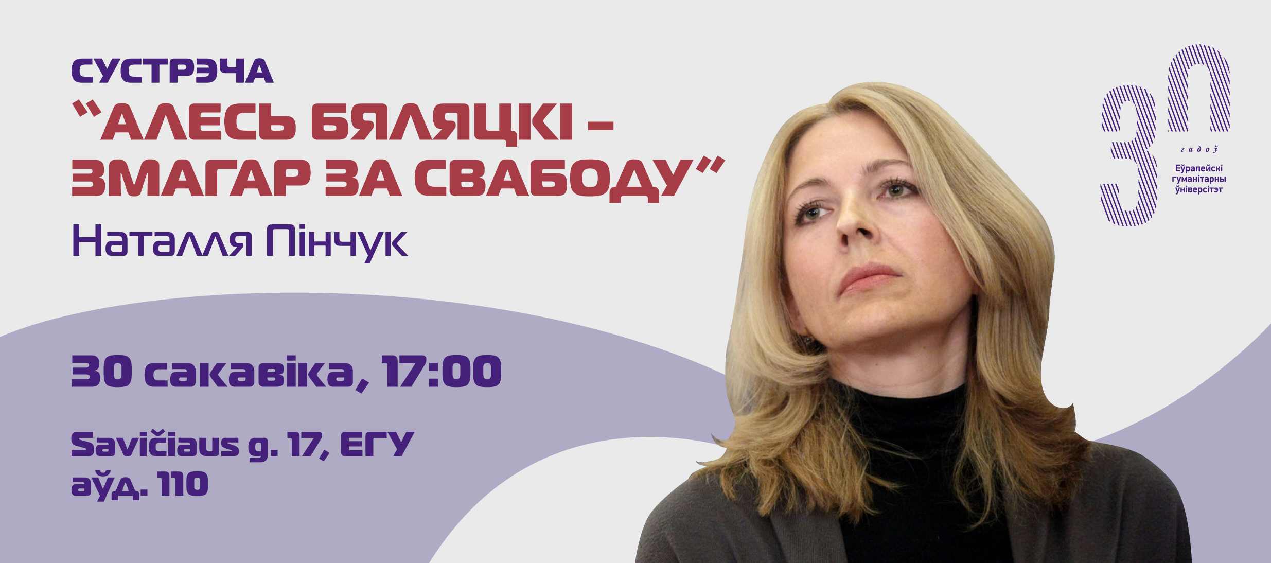 The event will be led into the activities of the Belarusian public figure, human rights activist, and 2022 Nobel Peace Prize laureate Ales Bialiatski. During the meeting, we will have a chance to meet the wife of the Nobel laureate – Natalia Pinchuk.