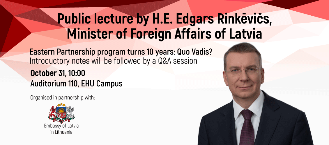 Public lecture “Eastern Partnership program turns 10 years: Quo Vadis?” is a part of Minister’s official agenda of the working visit to Lithuania. In his lecture Minister Rinkēvičs will cover the achievements of the Eastern Partnership program during its first decade of operations and will address the further avenues of development of the cooperation between the European Union and its Eastern Neighborhood.