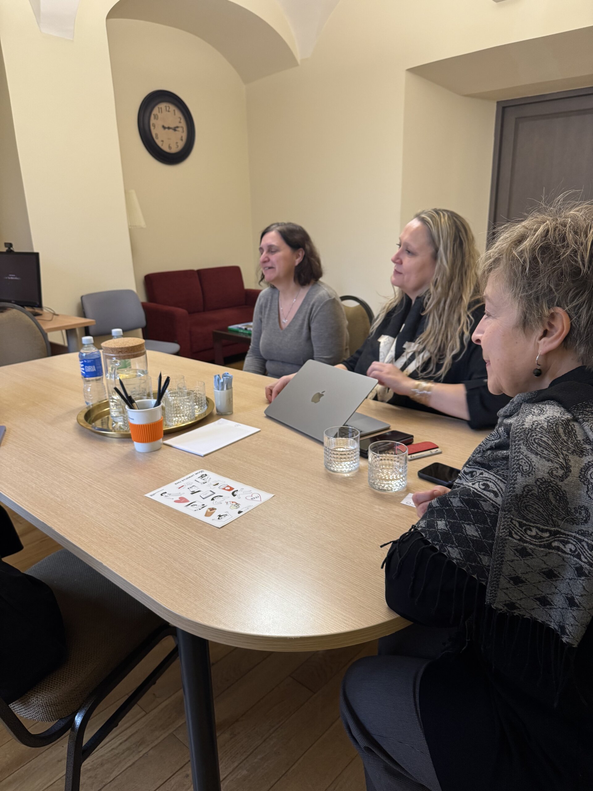 The visit began at EHU’s Main Building (Savičiaus g. 17), where the guests met with representatives of EHU’s academic and administrative units. The programme included meetings with Olga Rancova, Senior Manager for Research (Art) Activities, Nijolė Saugėnienė,  Director of the Academic Support Centre, and Julia Titova, Associate Professor of the Department of Humanities and Arts. The guests were also introduced to the university’s infrastructure and academic environment during a guided campus tour. A dedicated session with the Student Service and International Mobility Unit focused on international cooperation, mobility management, and Erasmus+ implementation practices.