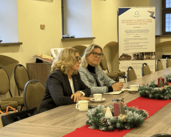 The meeting took place at European Humanities University and brought together senior representatives from both institutions. From EHU, participants included Rector Dr. Vilius Šadauskas, Olga Rancova, Senior Manager for Academic (Artistic) Activities, Dr. Ingrida Danėlė-Žalimienė, Head of the Department of Social Sciences, and Associate Professor Aliaksei Makhnach, Head of the Academic Department of Humanities and Arts. Mykolas Romeris University was represented by Rector Prof. Inga Žalėnienė and Vice-Rector for Studies Prof. Dr. Natalija Kaminskienė.
