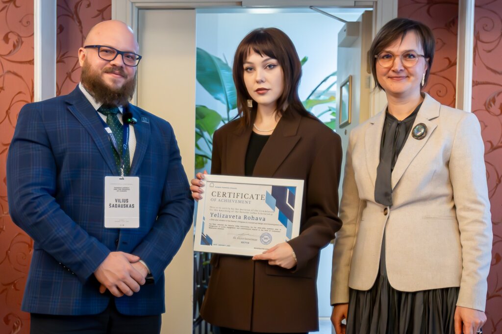 This marks the first granting of the Renatas Juška Nominal Scholarship. The scholarship was established during the commemoration of 20 years of EHU’s relocation and continued activity in Lithuania. Renatas Juška made a significant contribution through his dedicated diplomatic support and commitment to the University’s development.